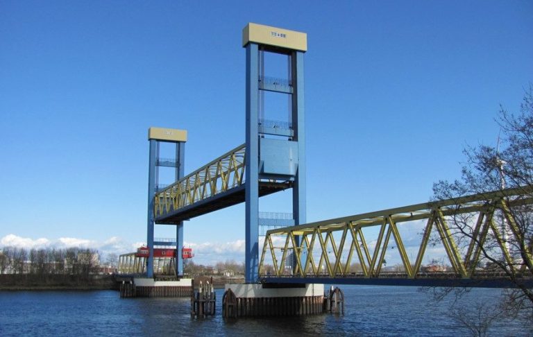 - Bauart/Material: Stählerne Hubbrücke (Fachwerk)